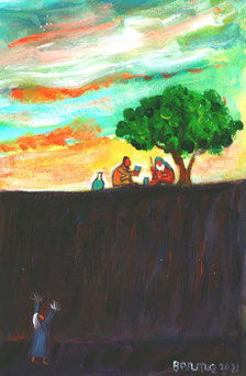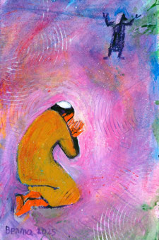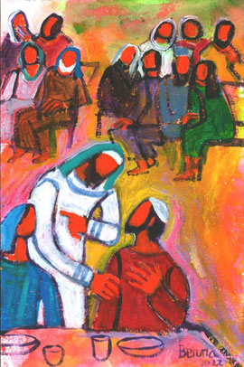 Il pubblicano invece, fermatosi a distanza, non osava nemmeno alzare gli occhi al cielo, ma si batteva il petto dicendo: “O Dio, abbi pietà di me peccatore”.