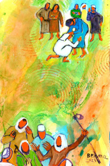 Chiamò uno per uno i debitori del suo padrone e disse al primo: “Tu quanto devi al mio padrone?”. Quello rispose: “Cento barili d’olio”. Gli disse: “Prendi la tua ricevuta, siediti subito e scrivi cinquanta”. Poi disse a un altro: “Tu quanto devi?”. Rispose: “Cento misure di grano”. Gli disse: “Prendi la tua ricevuta e scrivi ottanta”.