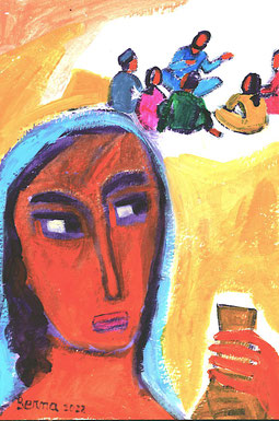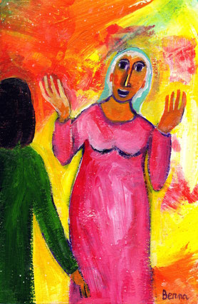 Venuto a mancare il vino, la madre di Gesù gli disse: «Non hanno vino». E Gesù le rispose: «Donna, che vuoi da me? Non è ancora giunta la mia ora». Sua madre disse ai servitori: «Qualsiasi cosa vi dica, fatela».